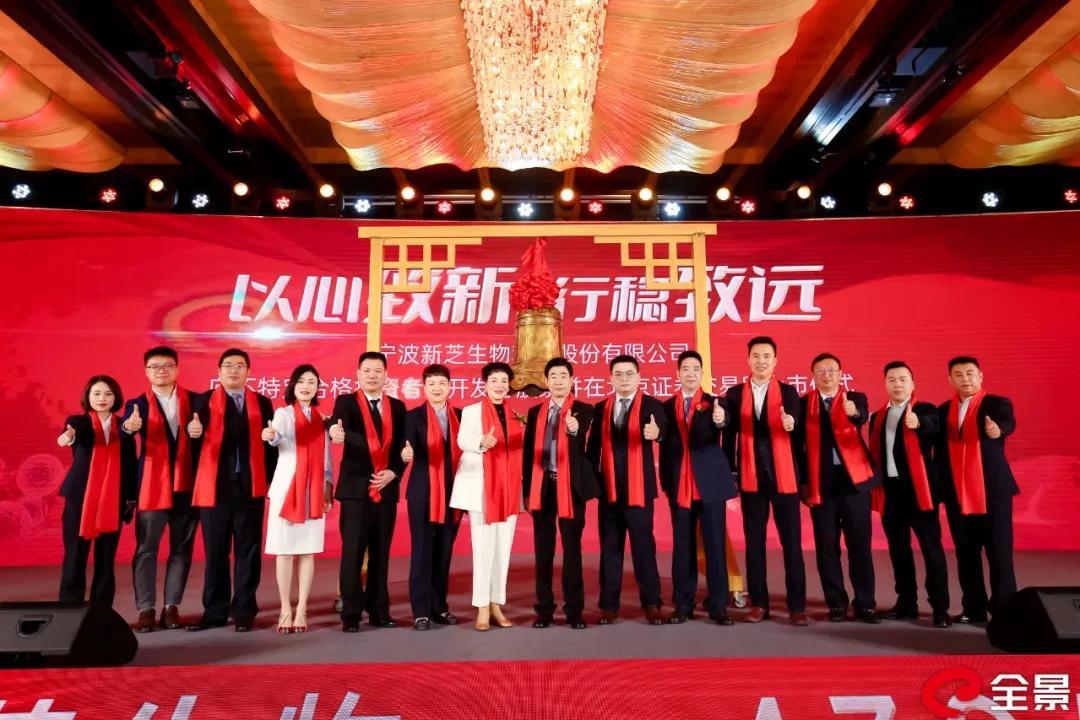 宁波新芝生物科技股份有限公司董事长周芳女士、创始人肖长锦先生、总经理钟文明先生,以及公司管理团队参加此次上市仪式。