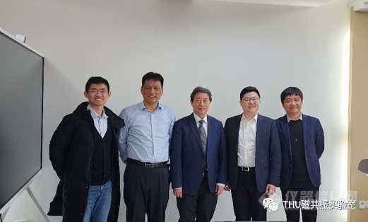 2023年2月14日,国仪量子公司董事长贺羽、副总裁冯泽东到清华大学分析中心磁共振实验室(以下简称磁共振实验室)参观交流,了解了国仪量子脉冲顺磁谱仪的运行情况,并就2023年度双方合作目标与重点达成了共识。清华大学李勇老师、杨海军老师、李文郁老师陪同参观并交流。国仪量子驻清华工程师范莹莹老师做了汇报,北京理工大学张博老师、吴昊老师、韩宇辰博士等也参与了此次活动。