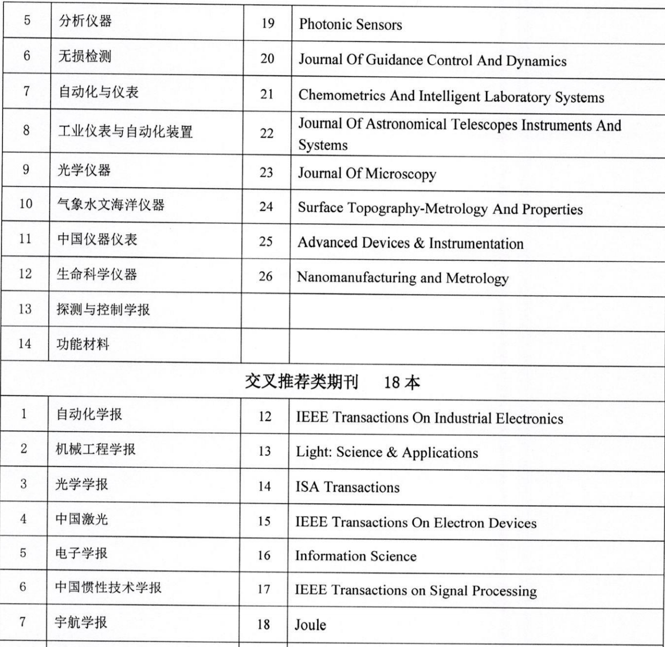 附件:《仪器仪表领域高质量科技期刊分级目录(2022版)》