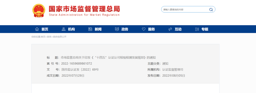 市场监管总局印发《“十四五”认证认可检验检测发展规划》