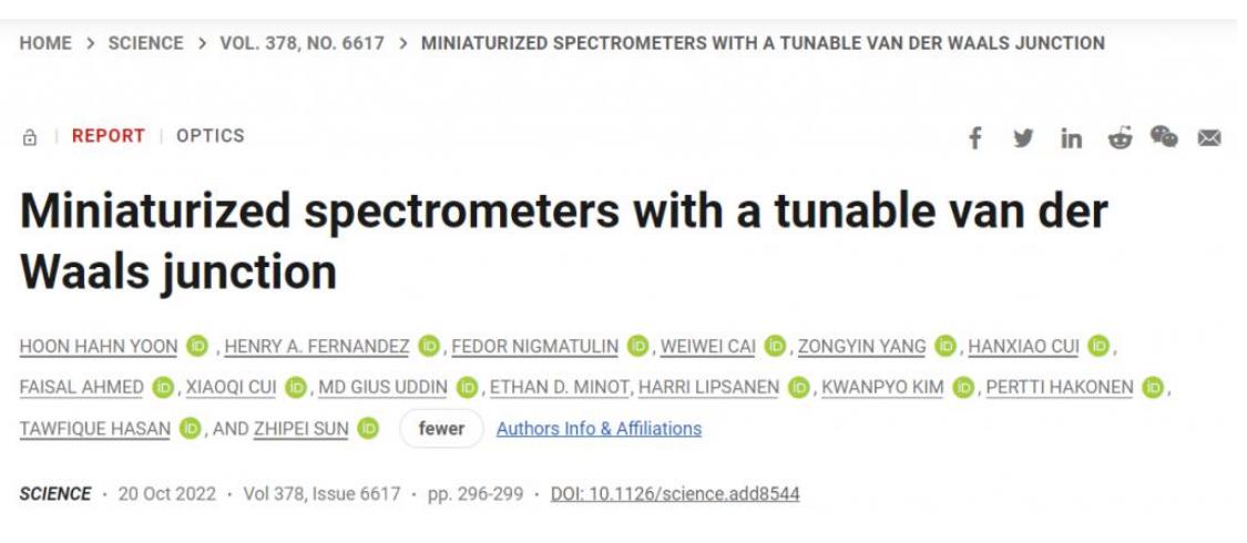 [ 1 ] Hoon Hahn Yoon et al, Miniaturized spectrometers with a tunable van der Waals junction, Science ( 2022 ) . DOI: 10.1126/science.add8544.