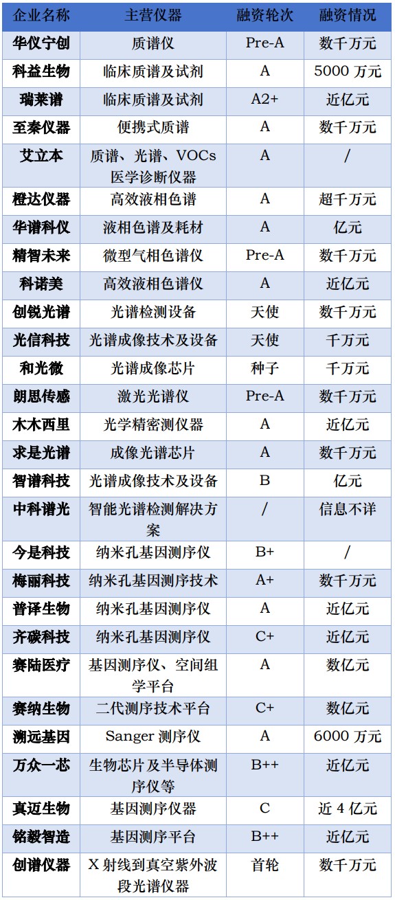 从仪器种类来看,生命科学仪器仍是最热门的投资赛道,2022年资本扎堆押注临床质谱,2023年资本则涌进基因测序领域,至少10家基因测序仪器企业获得新一轮投资,融资热度最高;分子互作、基因合成等领域的资本关注度也有提升。此外,色谱、光谱、专用仪器及核心零部件等领域也有不少资本进入。可见,科学仪器领域融资的广度及深度都在不断拓展,国产仪器自主研发能力将显著增强。
