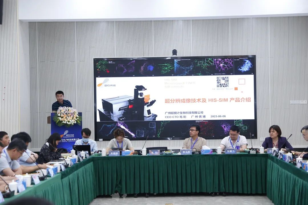 超视计科技总经理、技术总监毛珩代表公司向到场专家表示诚挚欢迎。随后向各位专家介绍了当前国产超分辨显微成像技术最新研究进展及研究成果,讲述了超视计科技从0到1的发展历程,展示了公司多样化的产品体系,汇报了公司市场推广及产品规划情况。他强调要不断提升公司的创新能力,不断扩大应用及售后团队,为国产科学仪器发展尽一份力量。