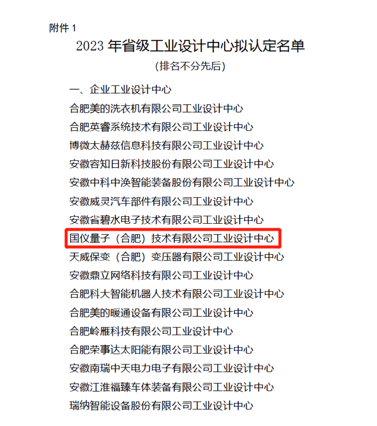 近日,安徽省经济和信息化厅公布了2023年省级工业设计中心认定名单,国仪量子(合肥)技术有限公司工业设计中心成功入选。