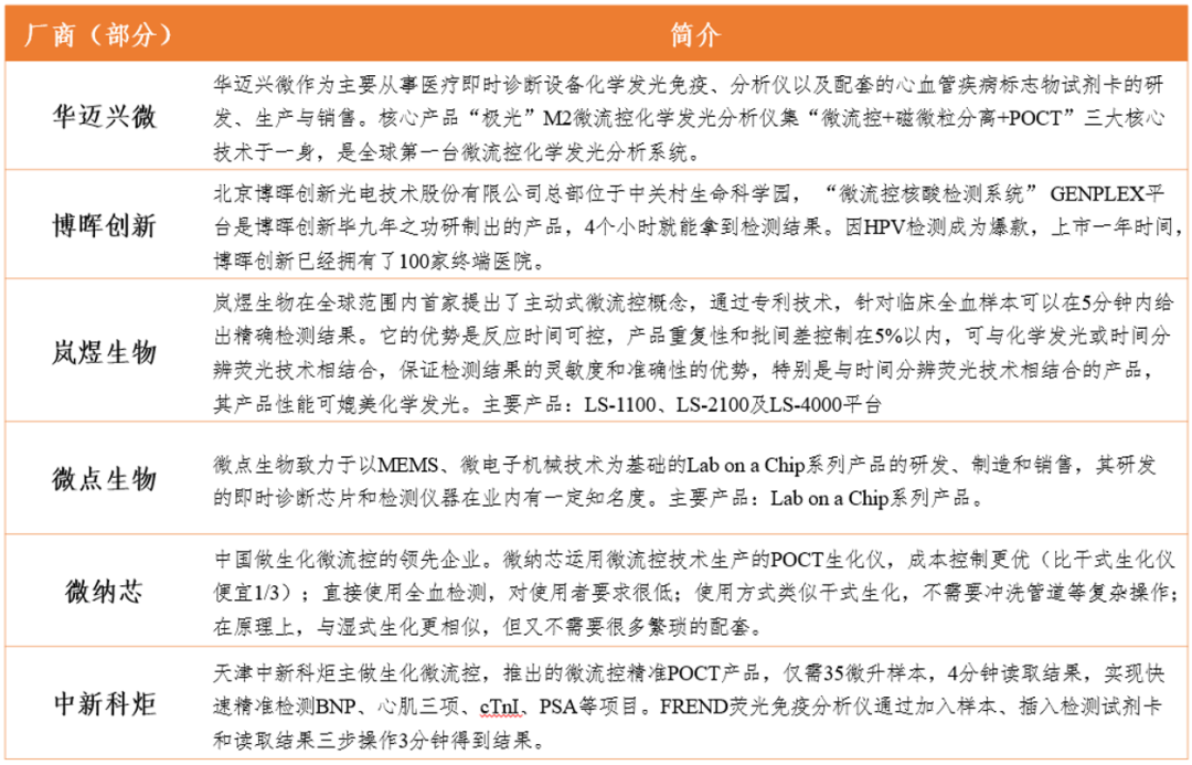 图5 国内主要微流控产品制造商