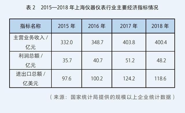 上海是我国仪器仪表行业的发源地,历史上产业规模和技术创新能力一直走在全国的前列,对全行业的发展曾起到重要的引领作用。近年来,行业调整、技术人才大量流失、国外仪表大量冲击国内市场、国内企业研发投入不够等原因制约了行业的快速发展,与其他省市相比总的销售规模略有下降,2015—2018年上海仪器仪表行业的运行情况见表2。