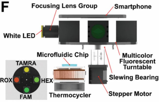 他举例称,像华为手机的潜望式模组,已经能把手机镜头的成像性能,提升很多。因此手机等硬件平台,越来越能支持病原体核酸检测设备的发展,并已成为一种大势所趋,甚至很多医疗分析也开始变为云上医疗。而现在的难点在于,初始判别数据的采集比如聚合酶链式反应的检测,还是要用户亲自到医院做检测。而一旦有了这款可移动便携设备,那就无需再去医院,因此会给老百姓的生活带来很大方便。