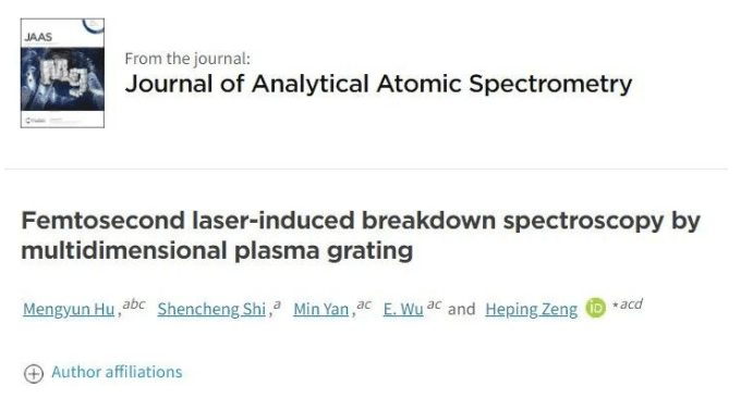 相关成果以题为Femtosecond laser-induced breakdown spectroscopy by multidimensional plasma grating发表在光谱类一区期刊Journal of Analytical Atomic Spectrometry杂志(胡梦云,施沈城,闫明,武愕,曾和平,JAAS,2022)。