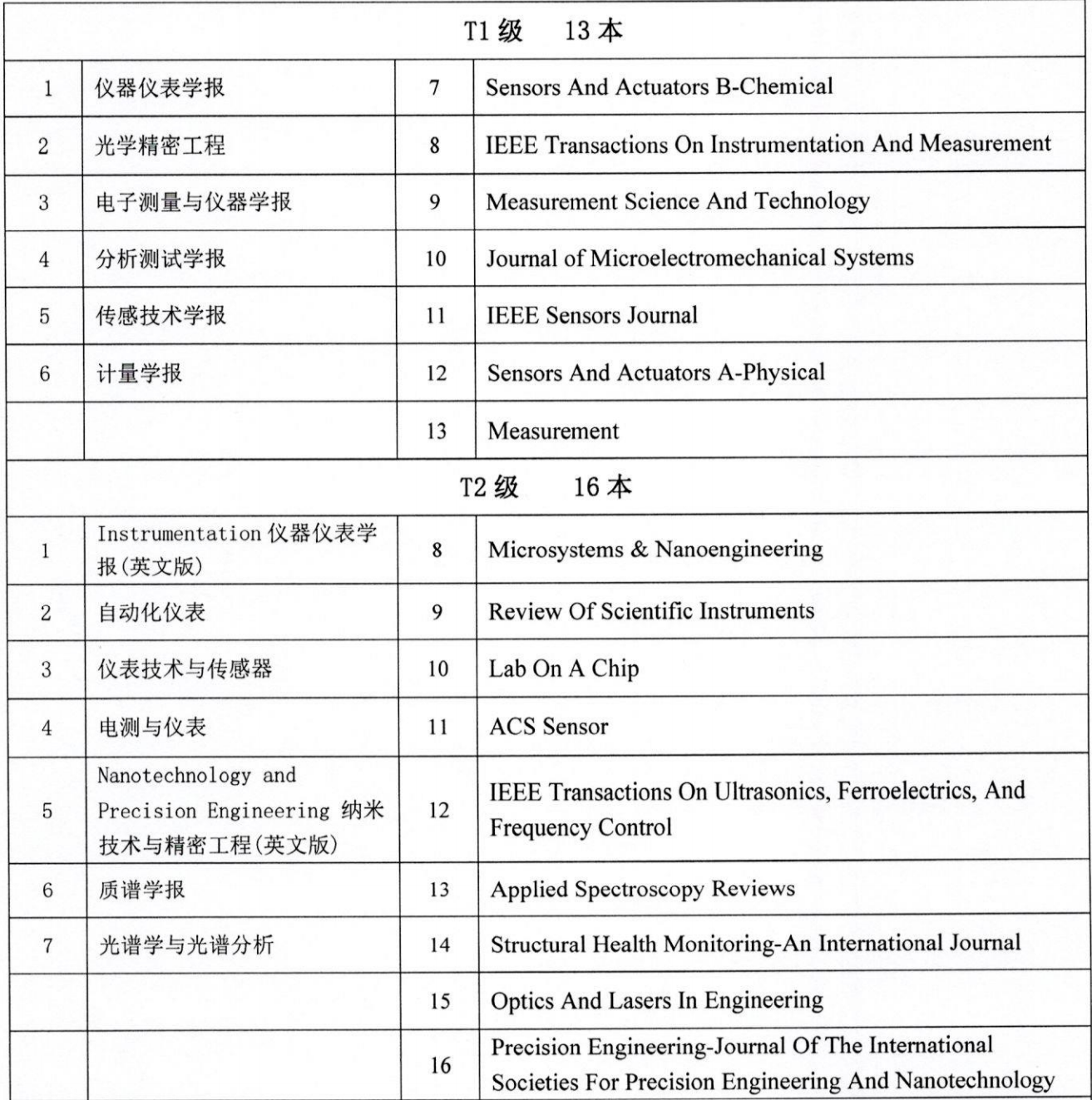 附件:《仪器仪表领域高质量科技期刊分级目录(2022版)》