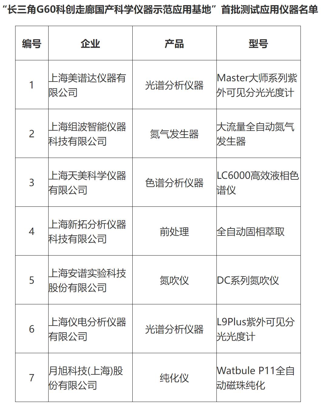 基地揭牌仪式后,活动正式发布了基地首批测试应用仪器名单,上海天美科学仪器有限公司生产的LC6000高效液相色谱仪、上海仪电分析仪器有限公司生产的L9Plus紫外可见分光光度计等7家公司产品入选了首批测试应用仪器。