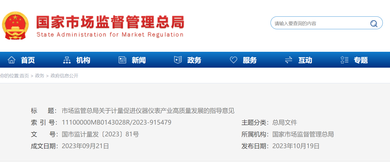 市场监管总局发布关于计量促进仪器仪表产业高质量发展的指导意见