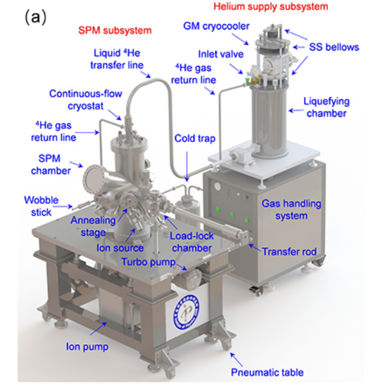 2023年9月,中国科学院物理研究所/北京凝聚态物理国家研究中心郇庆研究员团队与高鸿钧院士团队合作,研制了一套技术就绪度为TRL8级的无液氦亚3K低温SPM系统。该系统将低频大幅震动的制冷机安装在远端的独立制冷腔体,颠覆了现有无液氦SPM近端安装制冷机的方式。经过测试验证,该设备在非接触原子力显微镜原子级分辨成像、扫描隧道谱以及非弹性电子隧道谱的性能方面,达到了与传统液氦杜瓦的湿式SPM系统相媲美的水平。