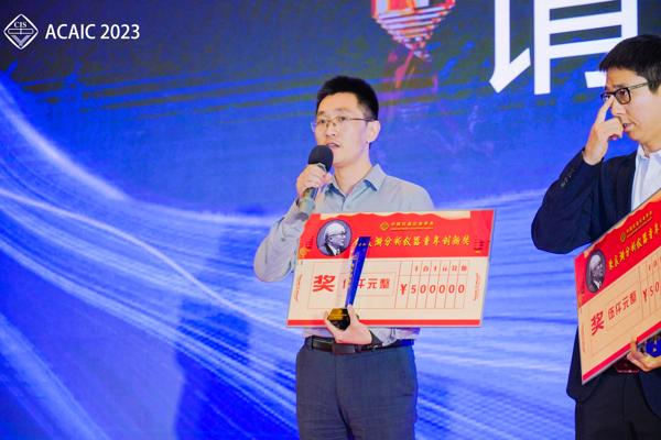 西安交通大学贺浪冲教授(右一)为获奖者颁奖
